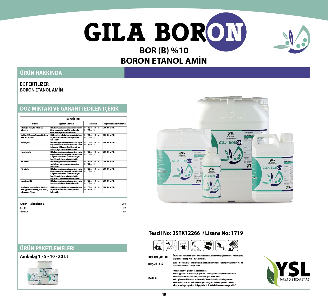 | Zeytin | Çiçeklenme öncesi ve sonrası | 150–200 cc / 100 Lt su | 300–500 cc / da | 300–500 cc / da |