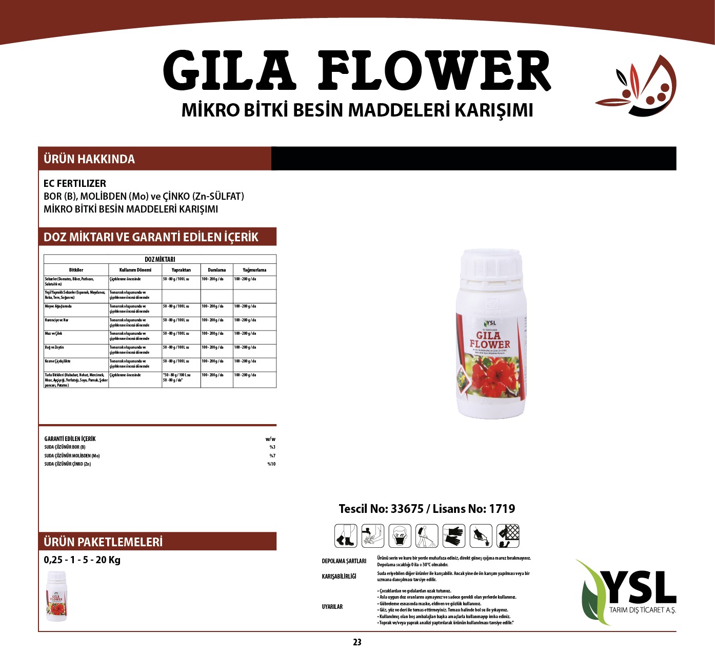 | Süs Bitkileri | Tomurcuklanma ve çiçeklenme | 100–150 cc / 100 Lt su | 250–500 cc / da | 250–500 cc / da |